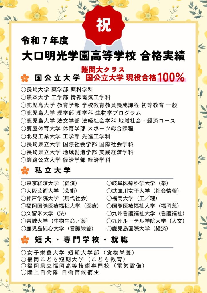 令和7年度卒業生合格実績